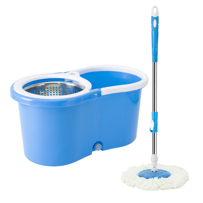 Mopa de microfibra mango de acero inoxidable extensible, balde de plástico + repuesto, centrifugadora de metal
